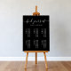Med ett vitt skript för elegant på en svart bakgrund är detta sittande diagram designat för 6 bord. Dess minimalistiska stil gör alla bröllopsmottagningar mer sofistikerade. Matchande objekt är tillgängliga.
