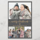 Budgeterad Elegant, Minimalistiskt, Modern Grått och Guld 4 Photo Collage God jul Script Helgdag Thin Card. Obs! Lägre än vykort! Den här sjutna, minimala fyra (4) fotokortsmallen innehåller en söt fotokollage, ett litet udda hjärta och säger God jul! Texten "God jul" hälsning är skriven i ett vackert guld-handskrivet typsnitt för dekorerade typografier-svan på bakgrunden av grått färg. På den omvända sidan finns hälsning textmall, lite svart dodle-hjärta och gräs träd på vit bakgrund. Söt, söt, tunn hälsningskort med billigt är ett underbart val för din familj och dina vänner under denna jul och Julhelg.