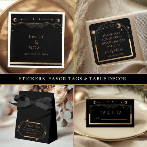 Celestial Black Gold Sun Moon Stars WeddingDesignad av Shirley Evans