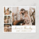 Budget, Elegant, Minimalistiskt Guld och Vita handskrivet Bröllop Grid 4-fotokollage - tackkort. Snyggt bröllop-kortmall med fyra (4) foto framtill och ett foto bakåt. Med texten "Kärlek och tack" i ett kursivt handskrivet skript för typografi, byts typsnittet svan ut. Anpassa ditt namn och tack för meddelandet. Kontakta mig om du behöver hjälp eller matcha objekt!