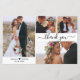 Elegant, minimalistiskt, Modern 4 Photo Collage Script Bröllop Tack är ett prisvärt tunt kort med låg budget. Snyggt bröllop tackar dig för en mall med fyra foto på framsidan och ett foto på baksidan. Med texten "Tack" i ett snabbt, stavat skrivstil eller kalligrafiskt skriptteckensnitt med dekortecken eller i svart på vit bakgrund. ***NOTERA! *** BUDGETEN PAPPER/FLYER ÄR PAPPER. *** UPPGRADERA PAPPRA TILL EN TEKNIKKER-PAPPER. *** Lite kärlek hjärta mellan namn. Lägg till ditt namn och tack. Om du föredrar att skicka anteckningen tar du bara bort exempeltexten för att få mer utrymme. Om du behöver hjälp eller matcha objekt kontaktar du designer! Underbart val för bröllop med låg budget.