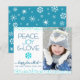 "Fred, glädje och kärlek." En roligt, lekfull, turkotisk, blåfaux foil snowflake-illustration, konetti-punkter och turkos och marin blå typografi på en ren, vit bakgrund, tillsammans med anpassningsbarna som du väljer, hjälper dig att gå in i Hanukkah-säsongen. En slumpmässig vit snöflinga mönster överträffar turkosa blå på baksidan. Känn helgdagarnas värme och glädje när du skickar det här fantastiska, grafiska, budgeterade fotokortet för personlig. Det finns också passande höljen, klistermärken, tote bags, papper förpackning, serveringsbrickor, hemmadekor och mycket annat. Skicka det här till någon speciell! Byt bara ut exempelfotot mot en av dina egna, skriv in valfri namn och du kan enkelt anpassa det här budgetfotot till Hanukkah-hälsningskortet. Var snäll och meddela mig med eventuella frågor eller förfrågningar.