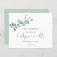 Ett ekonomiskt alternativ i BUDGET på en mindre storlek på 4,5 x 5,6 tum (110 lbs vikt), som är av samma tjocklek som ett vykort (är dock inte lämpligt för använda som vykort). OBSERVERA ATT DET FINNS EN inbjudan per lakan. Grönten Eucalyptus för budgeterat QR-kodskript sparar datumet. Lägg till QR-koden på webbplatsen bröllop på baksidan genom att ersätta QR-koden på provet. En minimalistisk botanisk design till inbjudan dina gäster för spara av din dejt. Vänligt Spara Vårt datum finns i ett modernt set skript.Resten av texten kan du enkelt anpassa. Du kan ändra text och färg i bakgrunden om du vill med hjälp av alternativet Anpassa ytterligare.