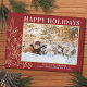 Skicka Säsonhälsningar till familj och vänner med snyggtens budgetkort för Helgdag. Det är dekorerat med guld hand plockade blad och bär på burgunrött. Anpassade enkelt med ditt foto och namn. Eftersom vi skapar vår egen teckning kommer du inte att hitta just den här bilden från andra designers. Teckning © Michele Davies.