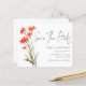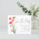 Budget Boho Red Wildblommor QR-kodskript Spara datumet. Ett mindre budgetpris på 4,5 x 5,6 tum på en 110 g/m halvglöd, ungefär lika tjockt som ett vykort. Det finns EN per lakan. Lägg till QR-koden på webbplatsen för bröllop eller ta bara bort den om den inte behövs. En minimalistisk blommigt med Spara datum i ett modernt set skript.Resten av texten kan du enkelt anpassa. Du kan ändra text och färg i bakgrunden om du vill med hjälp av alternativet Anpassa ytterligare.