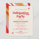 Budgeterad Retro Groovy Ivory Red 70-talsinbjudan till Studentfest med foto på baksidan