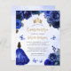 Den här vackra quinceañera-inbjudan har en gräns av royal blue ro på blå vattenfärgsbakgrund. En guld tiara, en mörk i royalets blå prinsessa-klänning och små blå fjärilar dekorerar texten. Ord "Quinceañera" och hedersgästens namn visas i handskriftsskriptet för guld-färgad i elegant, med den återstående texten i grått sans serif-teckensnittet. Lägg till ytterligare text på baksidan tillsammans med en QR-kod som hjälper dina gäster att besöka din quinceañera-webbplats och OSA-online.