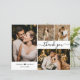 Elegant, Modern 4 Photo Collage Bröllop Hand Lettering av ett prisvärt tunt kort med låg budget för Tack. Snyggt bröllop tackar dig för en mall med fyra foto på framsidan och ett foto på baksidan. Med texten "Tack" i ett snabbt, handskrivet skrivstil med ett typsnitt med dekortecken eller i svart på vit bakgrund. ***VÄNLIGEN NOTERA! *** BUDGETEN PAPPER/FLYER ÄR PAPPER. *** UPPGRADERA PAPPRA FÖR EN TIKER-PAPPER. *** Postkort: https://www.zazzle.com/stylish_script_wedding_4_photo_collage_thank_you_postcard-256743531929513736 Traditional Cardstock with EnKuvert: https://www.zazzle.com/elegant_typography_script_wedding_4_photo_collage_thank_you_card-256676573582336140 Lägg till ditt namn och tack för ditt meddelande. Om du föredrar att skicka anteckningen tar du bara bort exempeltexten för att få mer utrymme. Om du behöver hjälp eller matcha objekt kontaktar du designer! Underbart val för bröllop med låg budget.