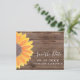 Budgeterat solrosskvot Bröllop spara datum-kort. Solblommor är en symbol för lojalitet och livslängd! Vilken bättre blomma ska du ha när du ber familj och vänner till spara din bröllop-dejt? Det här rustiska och enkla kortet har en ursprunglig vattenfärgsmålning av en solros i gulten på en lada med träbakgrund. Eftersom vi gör vår egen grafik kommer du inte att hitta just den här solrossen från en annan designer. Ursprunglig vattenfärg © Michele Davies.