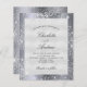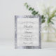 En modern inbjudan från elegant bröllop. Faux silver metallisk tittar bakgrund dekorerad med faux glitter damm från silver. Anpassa och lägg till information om namn och bröllop. Svart färgad brev.