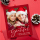Ett budgetvänligt säsong-rött helgdag-kort med elegant som innehåller ditt foto och ett "tacksamt" i ett snyggt vitt skript. Anpassa till hälsning ("Glad helg", "God jul" etc.) och ditt namn och år.