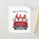 Den här budgetens roliga julkort i helgdag har en röd vintage lastbil med tre gnomer med vita skägg klädda i rött på baksidan. Anpassa till din familj namn och år. Designad av Susan Coffey.