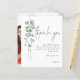 Ett prisvärt BUDGET-alternativ i en mindre storlek på 4,5 x 5,6” med semiglossy 110g vikt, som har liknande tjocklek som ett vykort (lämpar sig dock inte att användas som vykort). OBS! Det finns EN inbjudan per ark. Budget Eucalyptus Photo 30-årsfirande Tack. Modern minimalistisk stil med denna botaniska design med vattenfärgiga blad som flödar nedåt på vänster sida och text till höger. En handskriven typsnitt för Tack och resten av texten kan du enkelt anpassa. Ersätt provfotot på baksidan med ditt eget favoritfoto från din fest.