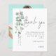 Budget Eukalyptus Foto Tackkort för födelsedagar. Ett budgetpris MINDRE 4,5” x 5,6” alternativ. Finns i en HALVMATT 110 lb KORTPAPPER som är standardalternativet (liknande tjocklek som ett vykort som rekommenderas för inbjudningar), ELLER en SATIN FINISH 80 lb TUNNT PAPER (mer lämpat för inklusioner). Modern minimalistisk stil med denna botaniska med akvarellblad som flyter ner på vänster sida och text till höger. En handskriven typsnitt för "Tack" och resten av texten kan du enkelt anpassa. Ersätt provfotot på baksidan med ditt eget favoritfoto från din fest.