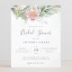 Vackert inbjudningskort för möhippan med rosa blommigt vattenfärgen eukalyptus och guld löv.