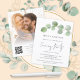 Ett ekonomiskt alternativ i BUDGET på en mindre storlek på 4,5 x 5,6 tum (110 lbs vikt), som är av samma tjocklek som ett vykort (är dock inte lämpligt för använda som vykort). OBSERVERA ATT DET FINNS EN PER lakan. BUDGET Eucalyptus Script Photo QR Code Bröllop kvällspartiinbjudan. Ett set handskriftsskript stil för Evening Party och resten av texten som du lätt kan anpassa. En elegant gren av vattenfärgsfärgad grönt med en ledtråd av guld eucalyptus löv flödar över från den övre högerna för en contemporary känsla. Lägg till ditt favoritfoto av de två på baksidan genom att helt enkelt ersätta exempelbilden. För att dina gäster ska kunna svara bör du lägga till din QR-kod på din svarssida på bröllop webbplats på baksidan genom att ersätta QR-koden på provet. Du kan skapa QR-koder för gratis online. Sök bara efter "QR-kodskapare" och många alternativ som komar upp till skapa gratis.