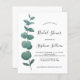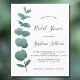 Budget Eucalyptus Inbjudningskort för möhippan. Denna enkla elegant Inbjudningskort för möhippa dekoreras med en enda eucalyptus sprig och modern typografi. Anpassa dem med din information. Eftersom vi skapar vår egen teckning kommer du inte att hitta just den här bilden från andra designers. Ursprunglig vattenfärg © Michele Davies.