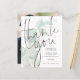 Ett budgetmässigt prist mindre än 4,5 x 5,6 tum alternativ. Finns i ett SEMI-GLOSS 110 lb-kort LAGRAR, vilket är standardalternativet (tjockare för inbjudningar), ELLER SATIN AVSLUTAR 80 lb PAPPER LAGRAR (perfekt för bilagor). Kuvert är ett extra som tillval och är något större än det storleka kortet. En botanisk elegant med en tonad bakgrund av eukalyptus löv som gränsar till den lämnat sidan och ställer in snyggt typografi för att den bästa delen av sidan ska fyllas i i Tack i ord. På baksidan byt du ut bild mot din egen favorit från din dag som en keepy för dina gäster. Anpassa enkelt resten av texten.