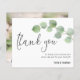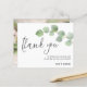 Ett budgetmässigt prist mindre än 4,5 x 5,6 tum alternativ. Finns i ett SEMI-GLOSS 110 lb-kort LAGRAR, vilket är standardalternativet (tjockare för inbjudningar), ELLER SATIN AVSLUTAR 80 lb PAPPER LAGRAR (perfekt för bilagor). Kuvert är ett extra som tillval och är något större än det storleka kortet. En elegant guld gren av grönt eucalyptus löv flödar delvis över från högerna, med en Tack av typografi i ett modernt skript till den lämnat sidan. På baksidan byter du ut ditt favoritfoto från din dag (med liggande orientering). Resten av texten på framsidan kan du enkelt anpassa till ditt eget ord. Ni kanske också är intresserade av vår hängivna gäst namn och adress-dekaler lakan i denna samling för att hjälpa till med era utskick från bröllop.