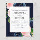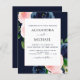 Budgetmarinblått och Rosa Modern och Elegant Faux Blommigt Watercolor Vår bröllop Inbjudningar - omfattar vacker och elegant manustypografi med moderna botaniska blommor och grönenergi för den speciella Bröllopsdagen firande.