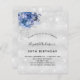 För en elegant 18:e (eller någon annan ålder) födelsedag. En snyggt faux silver metallic tittar bakgrund. Dekorerad med faux glitter damm och blå blommigtar. Anpassa och lägg till information om namn, ålder och party. Namn är skrivet med ett handskript i stil