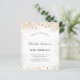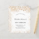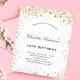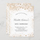 En vit snyggt bakgrund. Dekorerad med faux-damm från guld glitter. Anpassa och lägg till information om namn och party. Namn är skrivet med ett handskript i stil