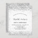 För en elegant 40:e (eller någon ålder) födelsedagsfest. En vit snyggt bakgrund. Dekorerad med faux silver glitter. Anpassa och lägg till information om namn och party. Namn är skrivet med ett handskript stil Bakåt: faux silver och faux glitter.