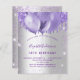 För en elegant 18:e (eller någon annan ålder) födelsedag. En snyggt faux silver tittar bakgrund. Dekorerad med violett, lavendel färgad faux glitter och ballonger. Anpassa och lägg till information om namn, ålder och party. Namn är skrivet med ett handskript i stil