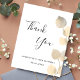 Ett tack för en 50-årsdag (eller vilken ålder som helst). En chic vit bakgrund som dekorerats med gyllene eukalyptus. På framsidan skriver stora svarta färgader skript och text: Tack, text, rubrik och datum. Tillbaka: Anpassa och lägg till tackkort och namn.