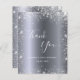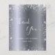 Ett tack för en 50-årsdag (eller vilken ålder som helst). En faux silver metallisk tittar bakgrund färg. Med faux glitter stoft. På framsidan, ett skript med stora bokstäver och texten: Tack, text, titel och datum. Tillbaka: Anpassa och lägg till tackkort och namn.