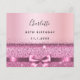 En faux ro guld metallisk bakgrund tittar på framsidan. På framsidan: Anpassa och lägg till svaret efter datum. Tillbaka: Lägg till namn, händelse och datum för händelsen. Dekorerad med en lila båge.