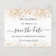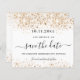 Ett giftigt och trendig Spara datumkortet för en 18:e (eller någon ålder) födelsedagsfest. En snyggt vit bakgrund som dekoreras med faux guld glitter damm. Anpassa och lägg till datum och namn och text. Texten: Spara datumet skrivs med ett stort trendig-handskript i stil med dekortecken.