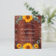 För en 40:e (eller någon ålder) födelsedagsfest. Rustiskt brun trä som bakgrund som dekorerats med vattenfärgade solblommor, eukalyptus grenery och gyllene löv. Faux guld glitter damm. Anpassa och lägg till information om namn och bröllop.