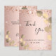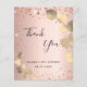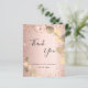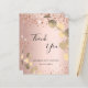 Ett tack för en 50-årsdag (eller vilken ålder som helst). En ro-guld-fingallmetallbakgrund, dekorerad med faux glitter-gnistor och guldeukalyptus. På framsidan, ett skript med stora bokstäver och texten: Tack, text, titel och datum. Tillbaka: Anpassa och lägg till tackkort och namn.