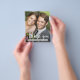 Liten 4,5" x 5,6" prisvärd tunn papper med ditt foto, orden Tack och ditt namn i chic bokstavsstil med ditt tackmeddelande på baksidan. 80 g papper och ditt val av 3 storlekar, **INGA KUVERTER INKLUDERAS. Se till att dubbelkontrollera din beställning innan du lägger till den i din kundvagn, eftersom det du ser på skärmen är det som kommer att skrivas ut. Live Design Service kan hjälpa dig med din designlayout om det behövs.