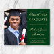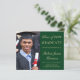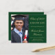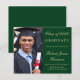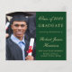 Prisvärd grön högskoleexamen inbjudan med foto av examenkandidaten, hans eller hennes namn och examensår i elegant guldsnitt och hans eller hennes universitet, huvudämne och utmärkelser.
