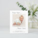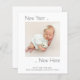 Budgeterat foto nytt år nytt födelsemeddelande här. En mindre 4,5 x 5,6 tum på en 110 g/m halvglans (liknande tjocklek som ett vykort). Ert nyfödd bebis har anlänt till det nya året! Du kommer att vara angelägen om att tillkännage de underbara nyheterna till dina nära. Du kan önska dem en Gott nytt år samtidigt med den här nyårskonstruktionen New Year, New here, som är helt anpassade tillsammans med ditt favoritfoto av din tjej eller pojke i nyfödd bebis. Favoritfotot är i fyrkantigt format i mitten, med mycket tomt utrymme som omger det för en contemporary. Anpassa enkelt texten på framsidan och baksidan med din egen, inklusive all information om din nya ankomst på baksidan, och byt bara ut exempelfotot i mallplatshållaren mot ditt eget. Du kan också ändra bakgrund och färg på båda sidor om du vill genom att anpassa ytterligare.