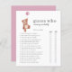 Gissa vem mamma eller pappa-babyduschspel i nalle tema