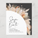 budgetera den moderna odlingen av ladugårdshus, botaniska bohemiska naturen terracotta pampas gräsmark snyggt bröllop spara datum inbjudan.
