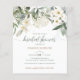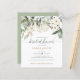 Letar du efter snygga eleganta bröllopsdusch-inbjudningar? Kolla in denna Bröllopsdusch Grönska Blommig Budgetinbjudan. Den har vacker akvarellgrönska, lövverk och vita blommor på framsidan och en bakgrund i salvia grön. Du kan ändra all text mycket enkelt eller till och med ändra typsnitt och färger med hjälp av designverktyget. Lycka till med anpassningen och ha en fantastisk fest! Med kärlek Frankie + Marlow.