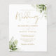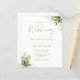 Budgetgrönt blomster guld bröllopsinbjudan