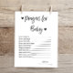 Inbjudan älskade dem för att sina hjärtliga böner och välsignelser för din lilla med vårt budgetanslag för barnvisare. Det här charmerande och budgetvänliga kortet är perfekt för att skapa en minnesvärd och meningsfull babydusch. Kortet har två svartvitt-hjärtemotiv som symboliserar kärlek och värme. Den här enkla men ändå elegant-utformningen är perfekt för alla babyduschteman. Utrymmet med tomma utrymmen gör det möjligt för gästerna att skriva sina böner, önskemål och välsignelser för baby och skapa en omhuldad keepy i flera år till komen.