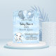 Observera att inbjudan är papper och mycket tunn. Kuvert ingår inte. Om du vill ha mer omfattande inbjudningar (samma design) kan du besöka vår butik. För en babydusch, fira en pojke. En blå, fingerad, metallisk tittar bakgrund. Dekorerad med blå faux glitter-droppar, målardroppstift, ballonger och en söt liten liten elefantpojke från baby. Anpassa och lägga till uppgifter om namn i mamma till namn och party. Namn och texten: Baby Shower är skrivet med ett handskript i stil