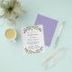 Observera att inbjudan är papper och mycket tunn. Kuvert ingår inte. Om du vill ha mer omfattande inbjudningar (samma design) kan du besöka vår butik. En vit bakgrund som dekoreras med lavender-blommor och eukalyptus grey. Anpassa och ett namn och detaljer. Baksida: lavender, violett färgad bakgrund.