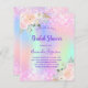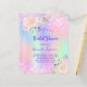 En regnbåge, holografisk färgad i lila, rosa, myntgrönt, ro guld. Dekorerad med rosa faux glitter, gnistor. Anpassa och lägg till information om namn och party. Namn är skrivet med ett handskript stil, lila färgad brev.