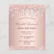 Observera att inbjudan är papper och mycket tunn. Kuvert ingår inte. För tjockare kort (samma design), besök vår butik. En modern, snyggt och glamorös inbjudan till en kvinnas 50:e (eller någon ålder)födelsedagsfest. En övertoningsbakgrund i ro guld med ro guld, dropp och glitter i silver, färgdroppstift. Anpassa och lägg till namn och partidetaljer. Namn är skrivet med ett modernt skript för färgaden ro guld i mörk, skrivet med stil.
