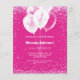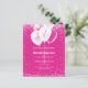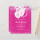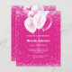 En shock rosa bakgrund. Dekorerad med rosa konetti och vita ballonger. Vit text. Anpassa och lägg till information om namn och party. 1 lakan = 1 inbjudan tryckt kant till kant.