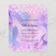 En giftig och feminin 18:e (eller någon ålder) födelsedagsfest inbjudan. På framsidan: En holografisk färgad i lila, rosa. Dekorerad med rosa-konfetti. Anpassa och lägg till information om namn och party. Namn är skrivet med ett handskript stil, lila färgad brev. 1 lakan = 1 inbjudan tryckt kant till kant.