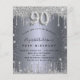 Observera att inbjudan är papper och mycket tunn. Kuvert ingår inte. Om du vill ha mer omfattande inbjudningar (samma design) kan du besöka vår butik. En modern, snyggt och glamorös inbjudan till en 90:e födelsedagsfest. En faux silver-tittar bakgrund, dekorerad med glitter-damm. Anpassa och lägg till ditt namn och information om party. Nummer 90 skrivs med ett stil-skript med ballong.