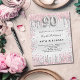 Observera att inbjudan är papper och mycket tunn. Kuvert ingår inte. Om du vill ha mer omfattande inbjudningar (samma design) kan du besöka vår butik. En modern, snyggt och glamorös inbjudan till en 90:e födelsedagsfest. En faux silver-tittar bakgrund, dekorerad med damm från rosa och faux silver glitter. Anpassa och lägg till ditt namn och information om party. Nummer 90 skrivs med ett stil-skript med ballong.